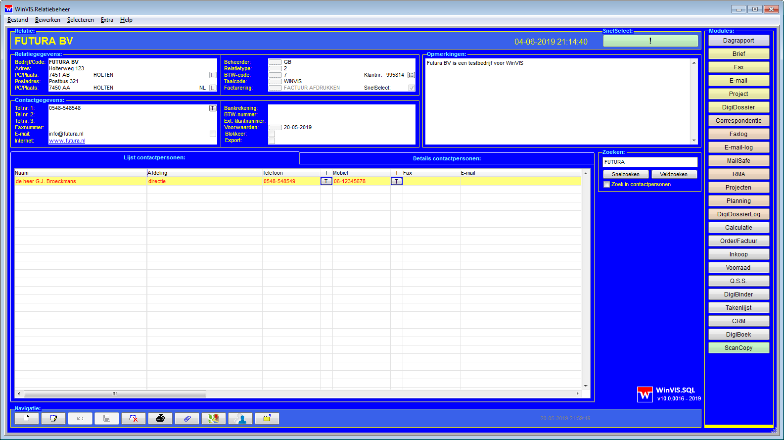 WinVIS relatiebeheer is de basis waar alles om draait. Je doet immers zaken en hebt contact met mensen, bedrijven, organisaties en instellingen. WinVIS groepeert digitale informatie bij al je relaties, zodat je snel en efficiënt kunt werken!